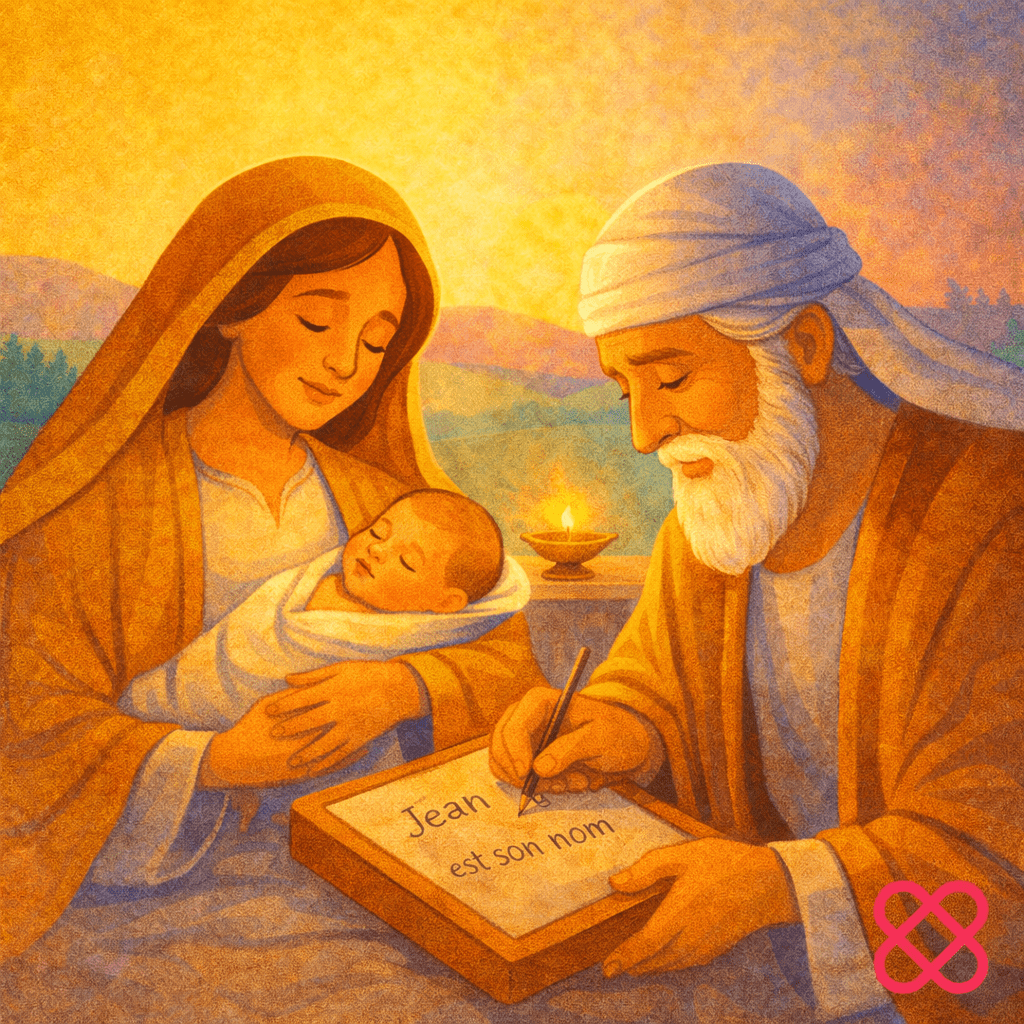 Ce détail est essentiel : Dieu ne supprime pas l’histoire passée, mais il l’accomplit en la transformant. Zacharie signifie « Dieu se souvient » — mémoire fidèle de l’Alliance ancienne. Jean signifie « Dieu fait grâce » — irruption du temps nouveau. Entre ces deux noms, une étape décisive est franchie.