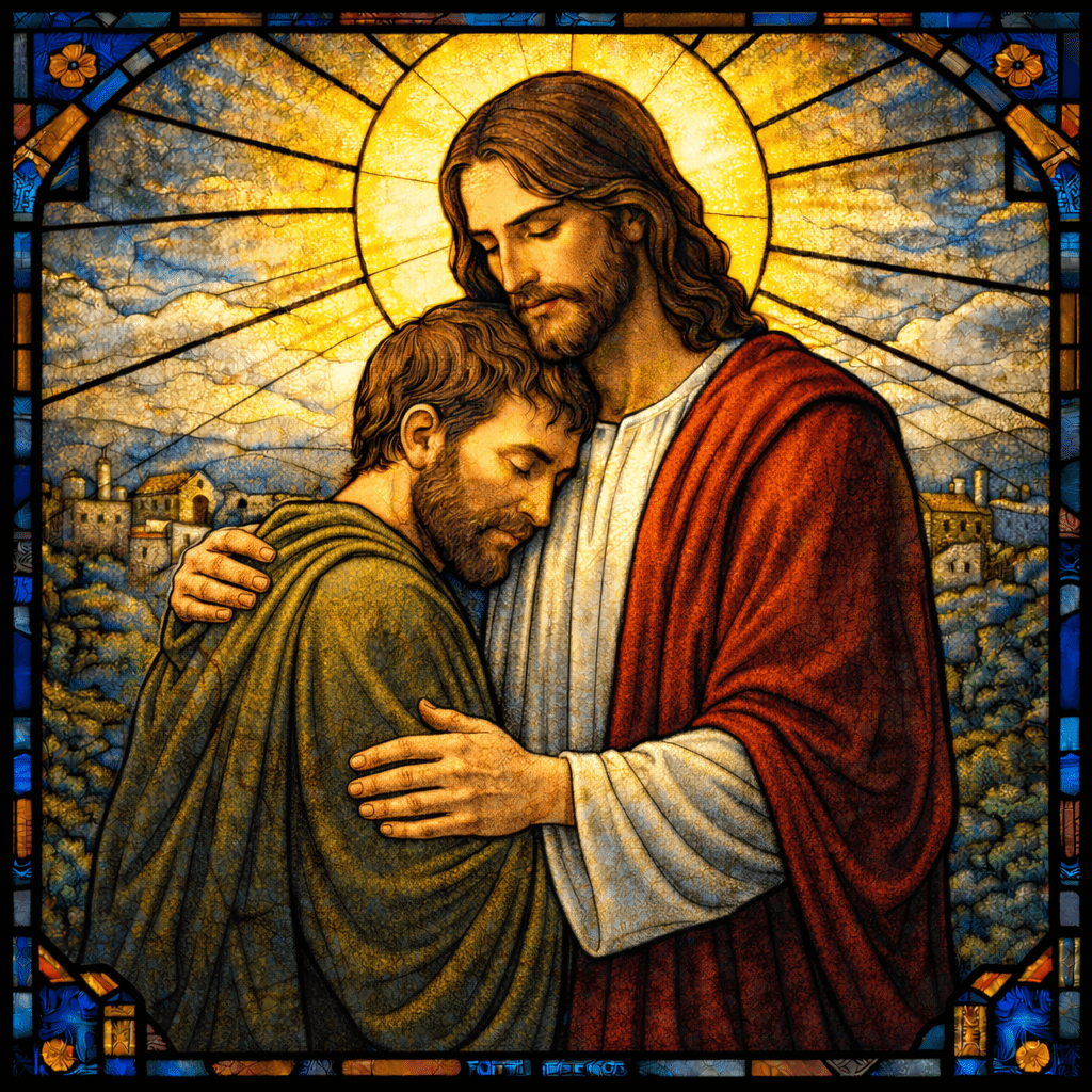 Dans l’Esprit de Bethléem, nous contemplons cette miséricorde sous un visage humble. Le Christ ne condamne pas, il relève. Il ne s’impose pas, il se donne. L’Enfant de Bethléem annonce déjà le pardon offert sur la Croix. La justice de Dieu n’est pas froide rétribution ; elle est grâce offerte, amour qui restaure.
