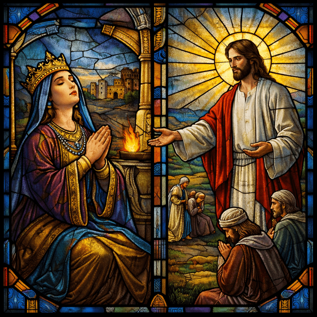 Dans la première lecture, nous entendons la prière d’Esther (Est 4,17). Le peuple juif vit une heure dramatique : menacé d’extermination, sans défense, il se trouve au bord du désespoir. Avant d’intervenir auprès du roi, Esther se tourne vers Dieu. Sa prière n’est pas une revendication, mais un abandon. Elle reconnaît la petitesse de sa force et la grandeur du Seigneur. Elle se souvient que Dieu n’abandonne jamais son peuple. Dans la détresse, elle ne cède pas à la peur : elle s’appuie sur la fidélité de Dieu. Et cette confiance devient source de salut. L’histoire nous montre que Dieu répond à la prière confiante, même lorsque tout semble perdu.