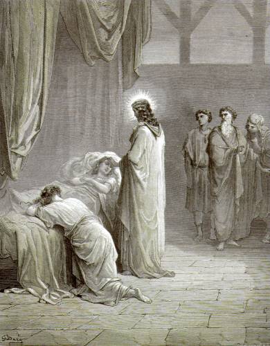 Puis vient la seconde scène. La fille de Jaïre est morte. Tout semble fini. Mais Jésus prononce une parole qui traverse la mort elle-même : « Talitha koum »« Jeune fille, je te le dis, lève-toi ». Le verbe koum, se lever, est le langage même de la résurrection. Ce n’est pas seulement une guérison : c’est une recréation.